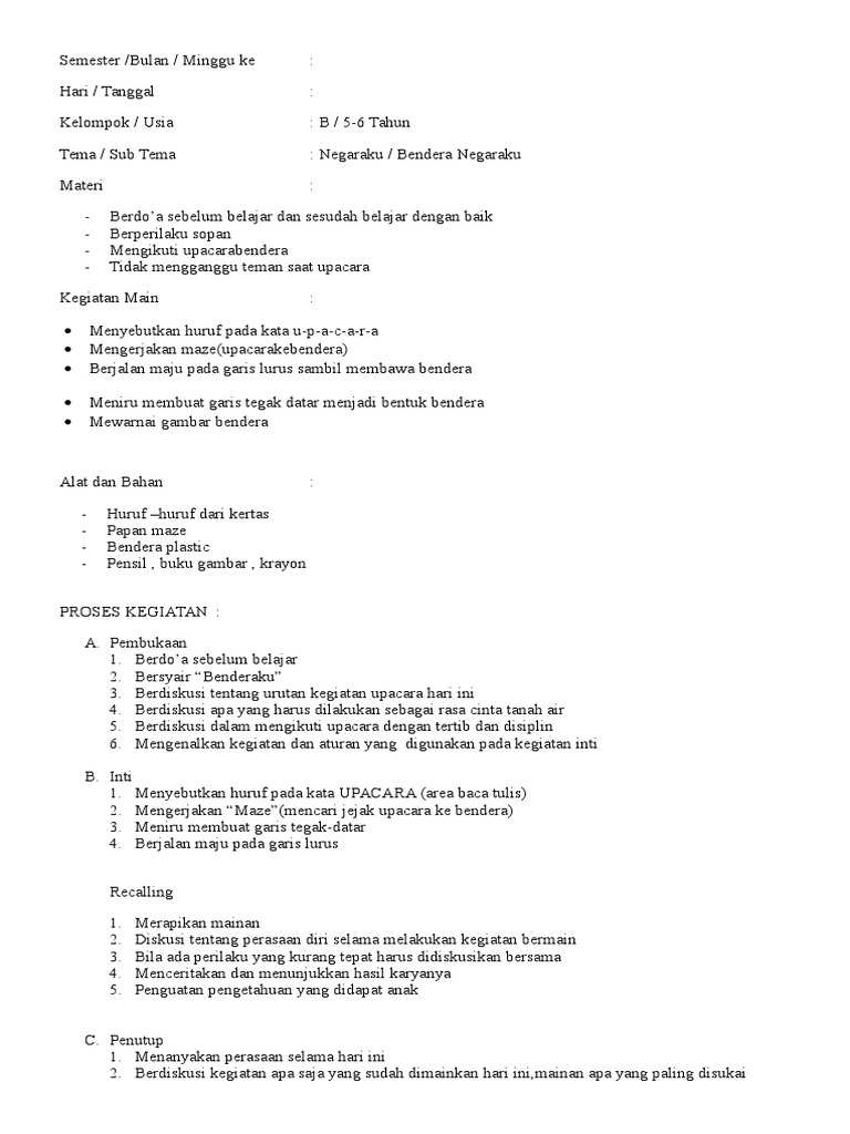 Rpph Tk Paud Kurikulum 2013 Kelompok Usia 5 6 Tahun Tema Negaraku Subtema Nama Negara Administrasi Tk Paud from 3.bp.blogspot.com Nantinya, anda bisa mengubahnya dalam bentuk pdf jika diperlukan. Biar efektif, ini cara pembelajaran materi tk tema negaraku yang membuat anak merasa nyaman dan menyenangkan. Oct 11, 2018 · demikianlah contoh rppm paud tema tanah airku/negaraku untuk anak tk kelompok b yang bisa saya bagikan. Tentunya putra putri kita perlu kegiatan yang bermanfaat dalam mengisi. Contoh soal anak tk b semester 2. Dimana kegiatannya terdiri dari menyusun suku kata, melakukan pembuatan minitatur menggunakan bahan bekas, dan mengenal tekstur dari bahan. Soal soal tersebut bertemakan tentang tanaman padi. Download soal ujian tahsinul kitabah tkq tka pontren com.